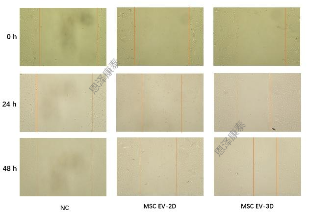 干细胞外泌体的促修复活性检测:HUMSC外泌体对成纤维细胞的促迁移作用(3D组为本产品组)